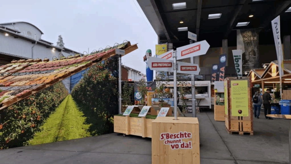 Ergänzend gibt es spannende Informationen zur Agri-Photovoltaik (Agri-PV) im Obstbau – einer innovativen Technologie, die Energiegewinnung und Obstproduktion verbindet. Ein interaktives Highlight auf der Sonderfläche ist das Stromvelo: Hier können Gross und Klein in die Pedale treten und herausfinden, ob sie so viel Energie erzeugen können wie eine Agri-PV-Anlage.